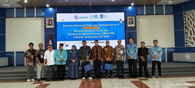 Surakarta, 5 Juli 2025 — Jurusan Fisika Unsoed menunjukkan komitmen dan kontribusinya dalam pengembangan ilmu pengetahuan dan riset nasional dengan berpartisipasi aktif dalam Seminar Nasional Fisika dan Pertemuan Ilmiah Tahunan (PIT) XXXVII yang diselenggarakan oleh PSI Cabang Jawa Tengah dan Daerah Istimewa Yogyakarta (DIY) pada tanggal 5 Juli 2025 di Universitas Sebelas Maret (UNS) Surakarta.